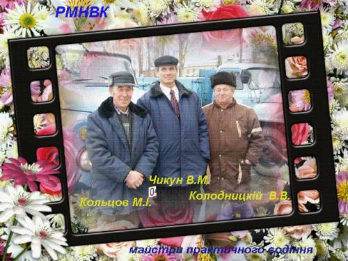 На фото:Кольцов Микола ІЛЛІч, Чикун Володимир Миколайович (механік), Колодницький Віталій Владиславович (ветеран профілю) - на фоні автомобільного парку (ГАЗ - 51(52)) Рівненського МНВК
